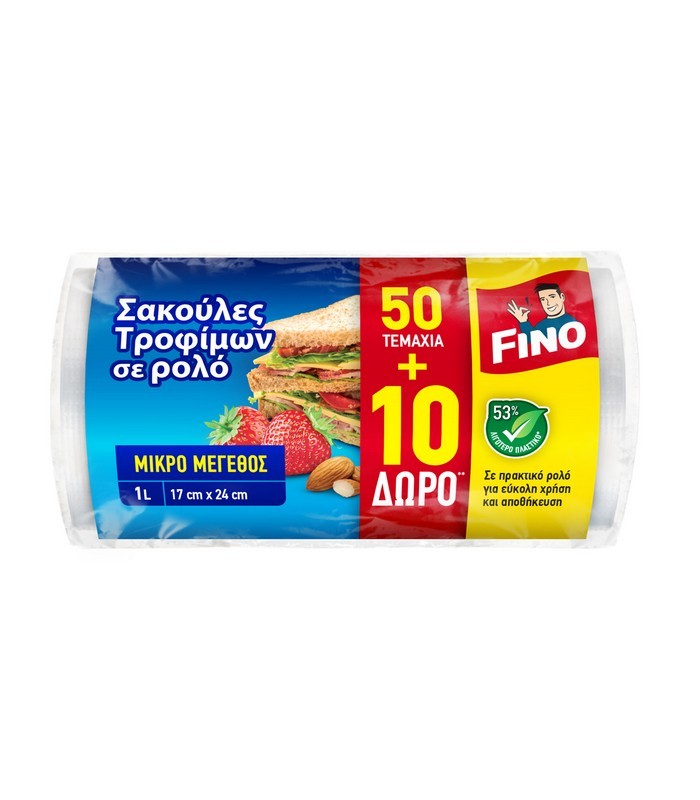 FINO BAGS ΣΑΚΟΥΛΕΣ ΤΡΟΦΙΜΩΝ ΡΟΛΟ 50Τ+10Τ ΔΩΡΟ ΜΕΣΑΙΕΣ 4lt Χ 40